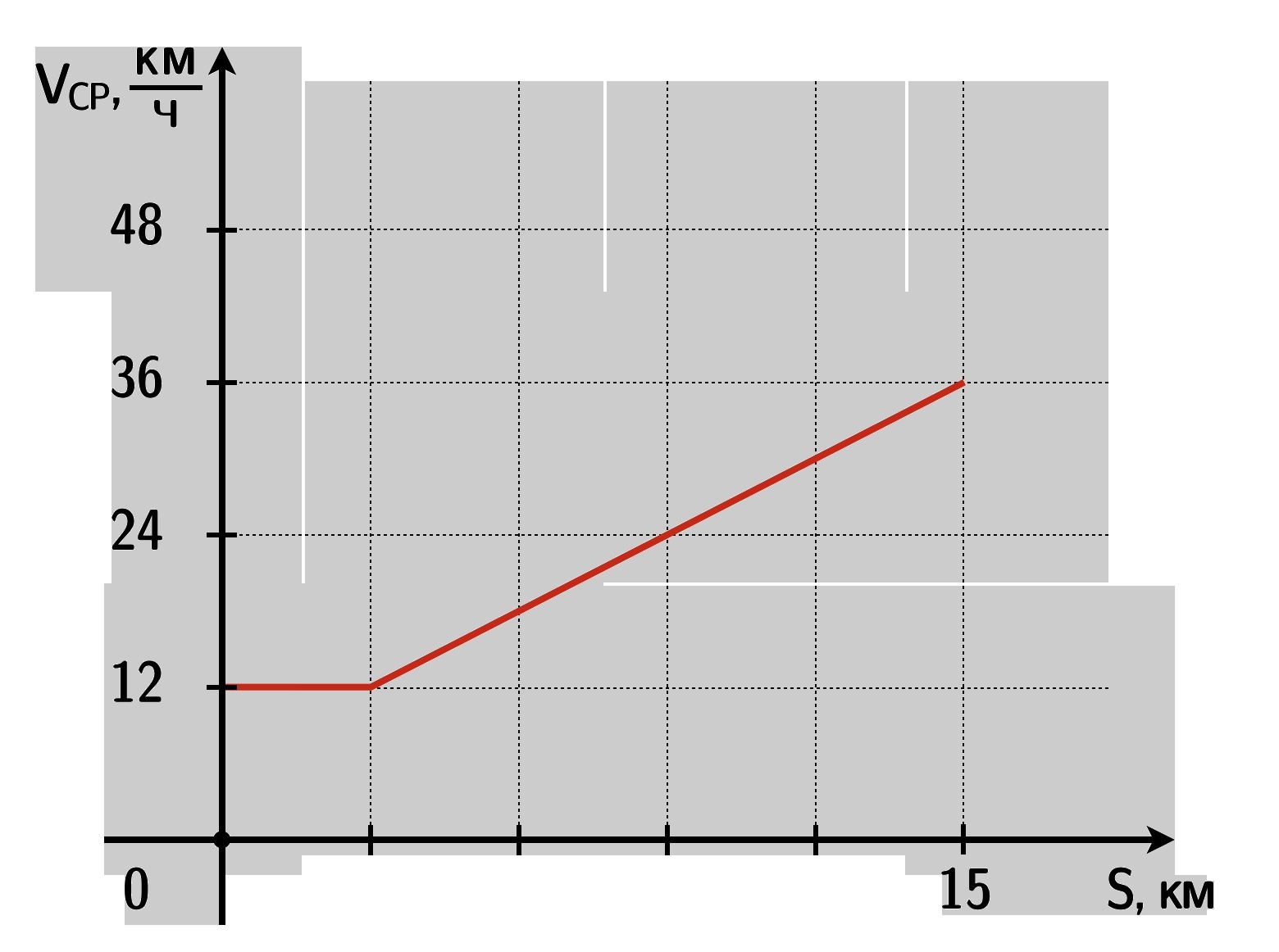 На рисунке представлен график зависимости средней скорости автомобиля от величины пройденного им пути. Определите среднюю скорость автомобиля на участке, где он разгонялся. Ответ выразите в км/ч, округлив до целых.