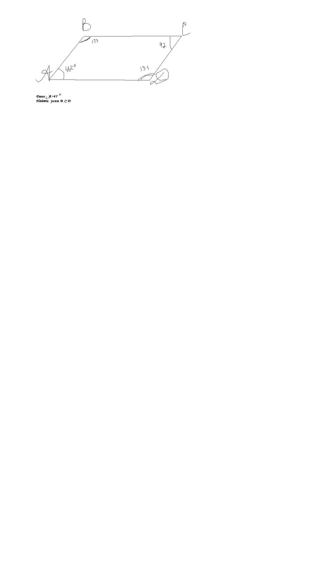 В параллелограмме противоположные углы равны, т.е. угол С=угол А=47°
