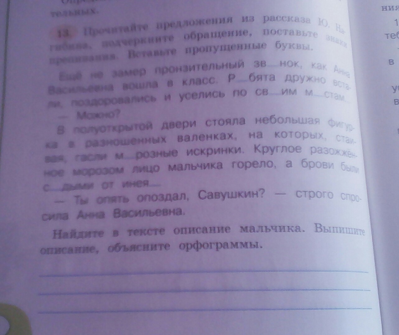 Прочитайте предложения из рассказа ю Нагибина подчеркните обращения поставьте знаки препинания вставьте пропущенные буквы