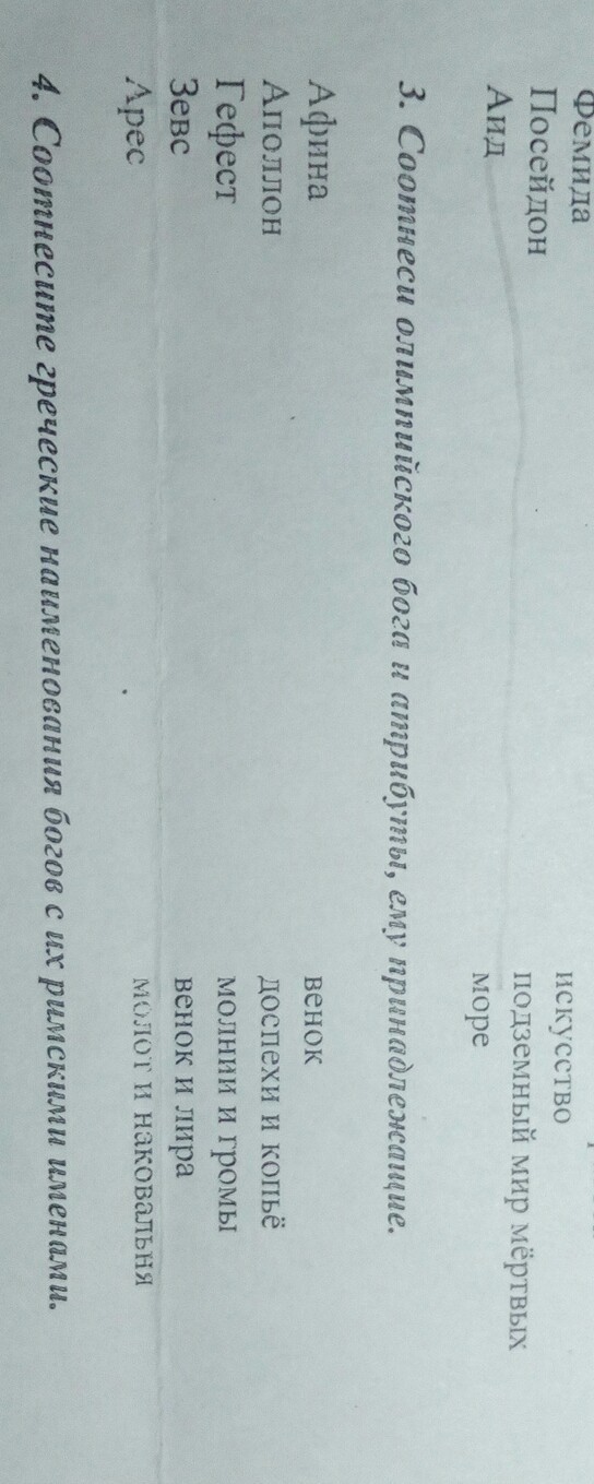 соотнеси олимпийского бога и атрибуты, ему принадлежащие