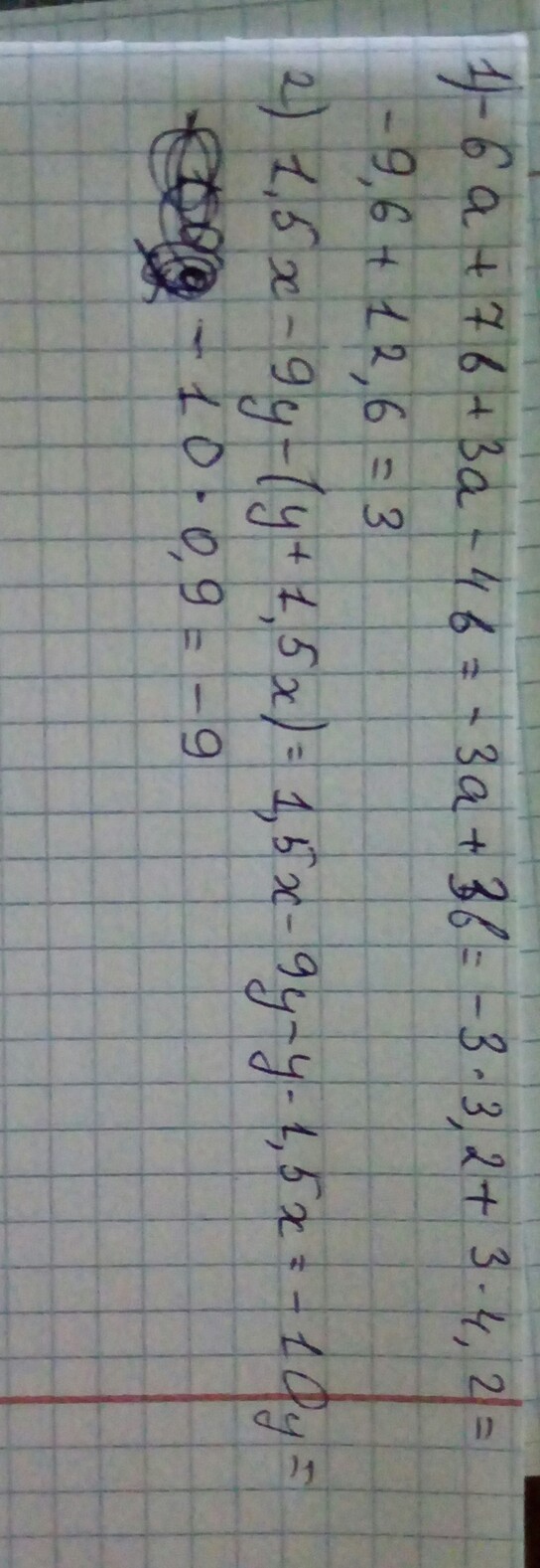 А) -6a+7b+3a-4b,если a=3,2, b=4,2