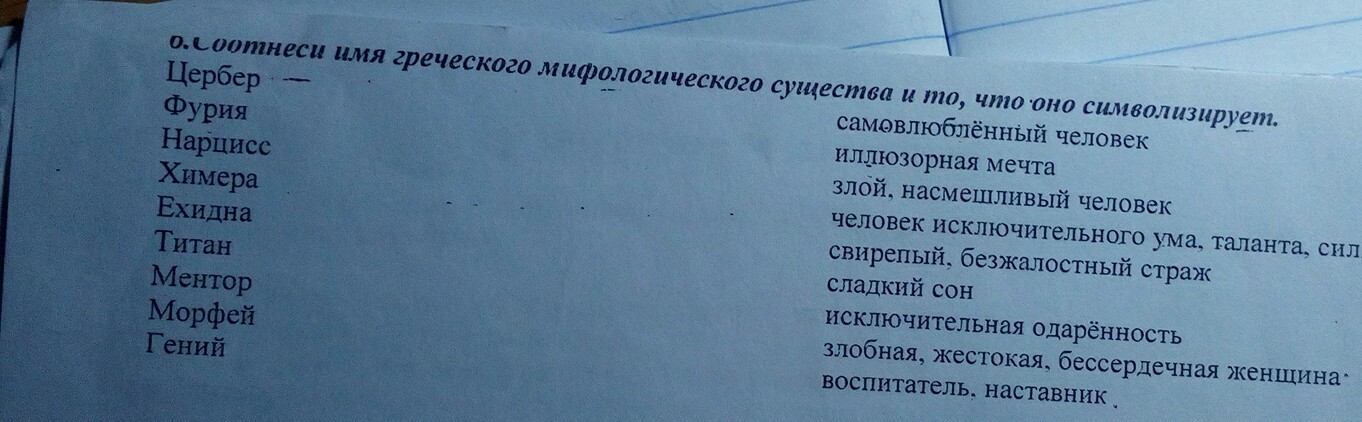 соотнеси имя греческого мифологического существа и то, что оно символизирует