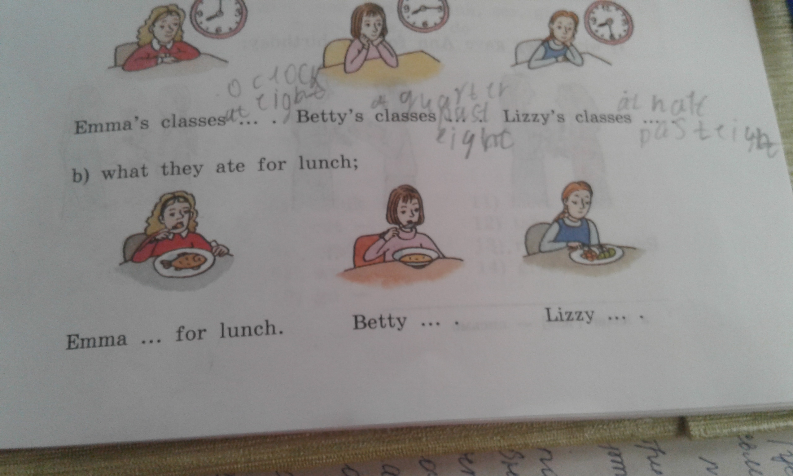 3) Lizzy ate vegetables for lunch