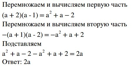 Перемножил отдельно (a+1)(a-2)=a²-a-2, далее представил как -(a²-a-2).