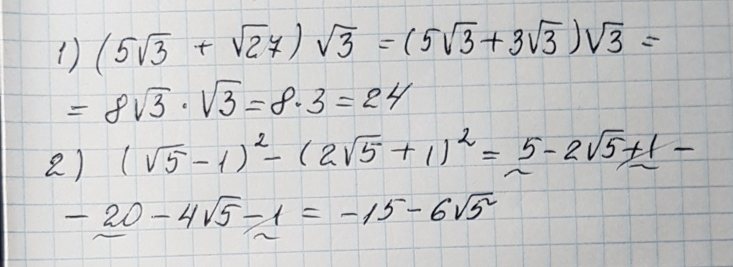 1) (5 крень из 3 + корень из 27)* кокрень из 3=