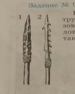 Выполните задания и ответьте на ВОПРОС. Напишите названия ИЗОБРАЖЕННЫХ орудий труда. Какое из этих орудий обычно использовалось-для ловли крупной рыбы? Объясните, почему вы так думаете