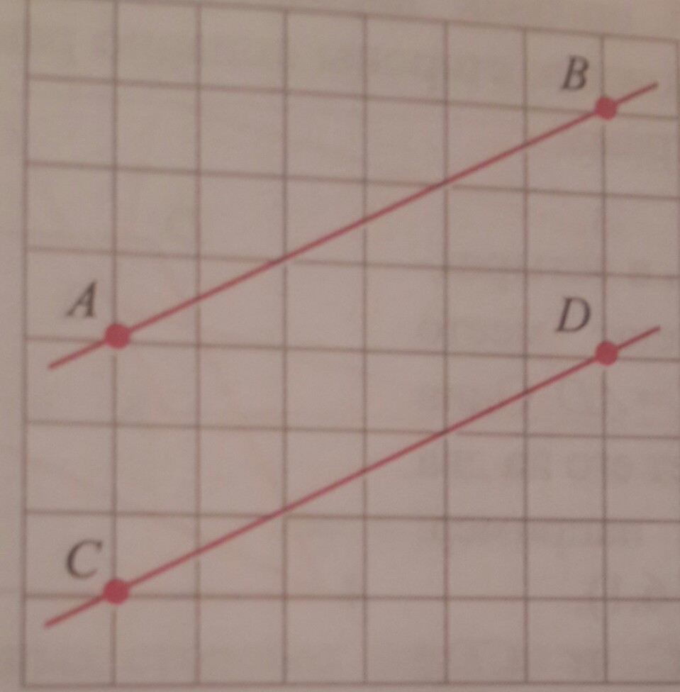 На клетчатой бумаге отмечены точки A,B,C,D .Докажите, что прямые AB и CD параллельны
