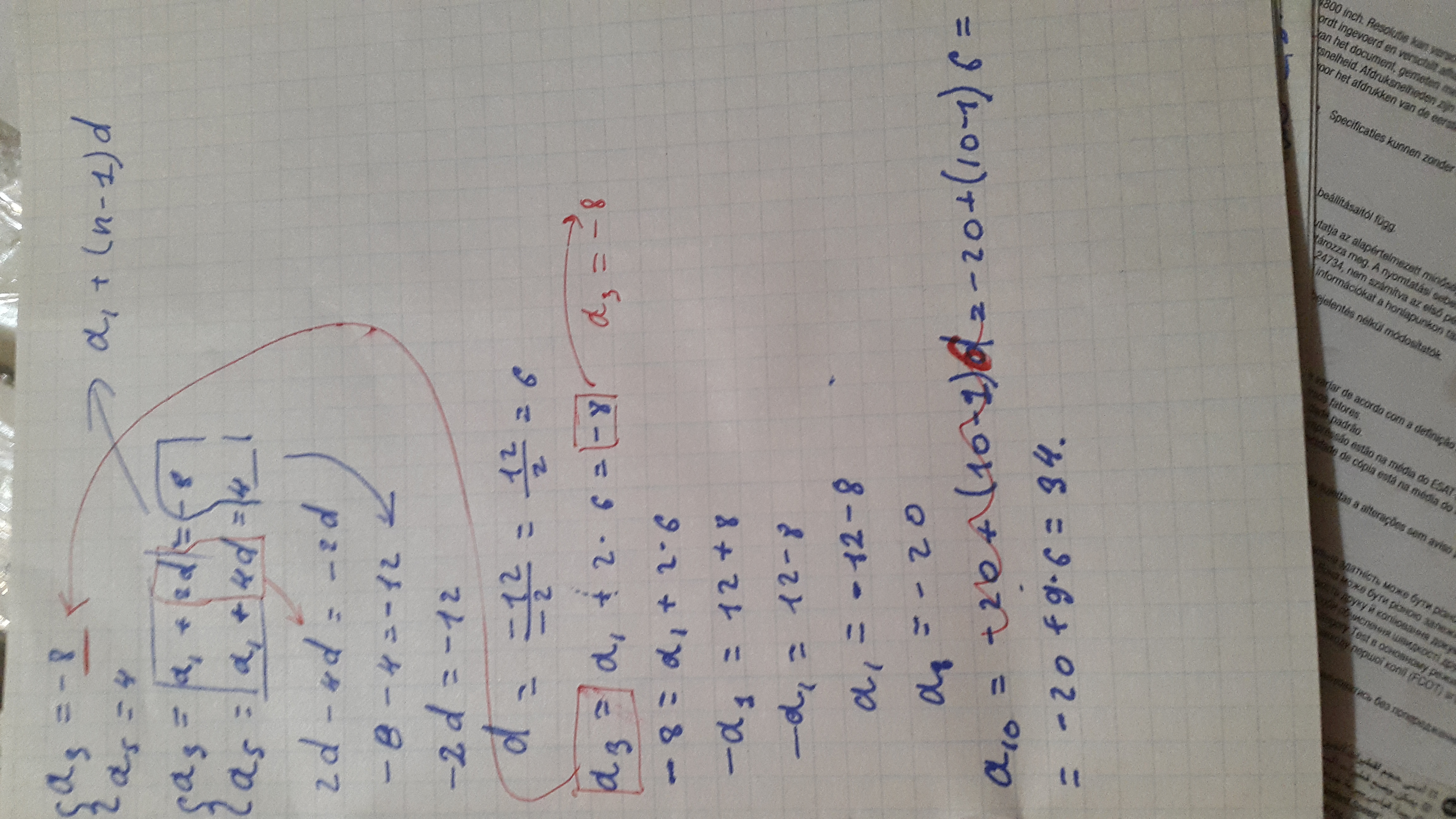 a₁₀=a₁+9d=-20+9*6=-20+54=34.