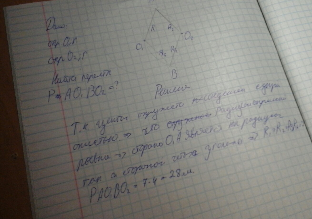 ребята помогите пожалуйста. Две окружности расположены так, что каждая проходит через центр другой окружности. Центры окружностей и точки их пересечения являются вершинами четырехугольника. Найдите периметр этого четырехугольника, если диаметр одной из окружностей равен 7 см