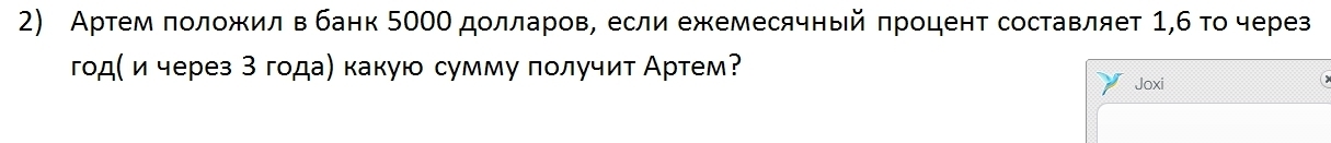 float ppy = ((5000 / 100) * 1.6F) * 12; // Persents per Year