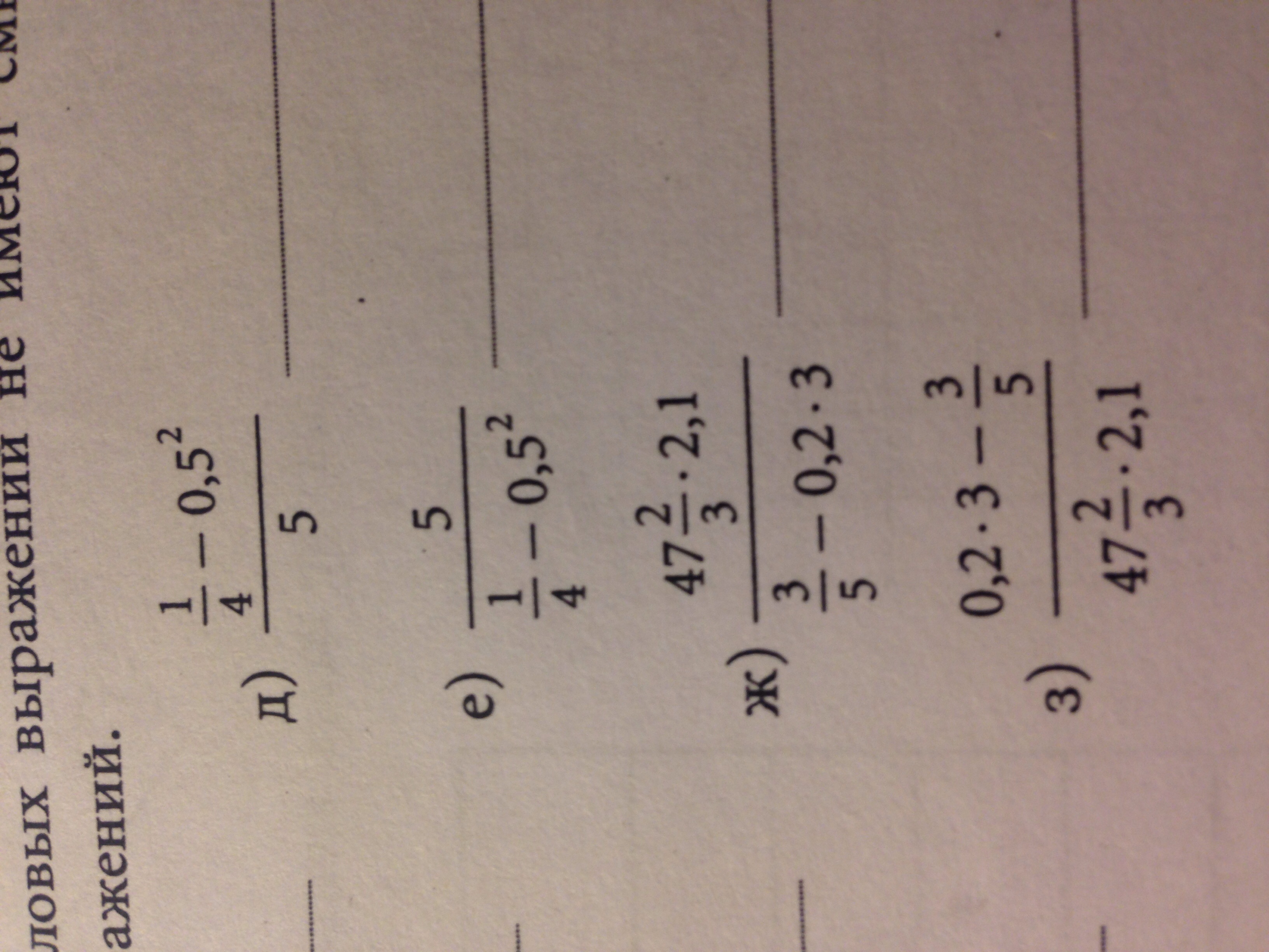 Выясните, какие из числовых выражений не имеют смысла. Найдите значения остальных выражений.