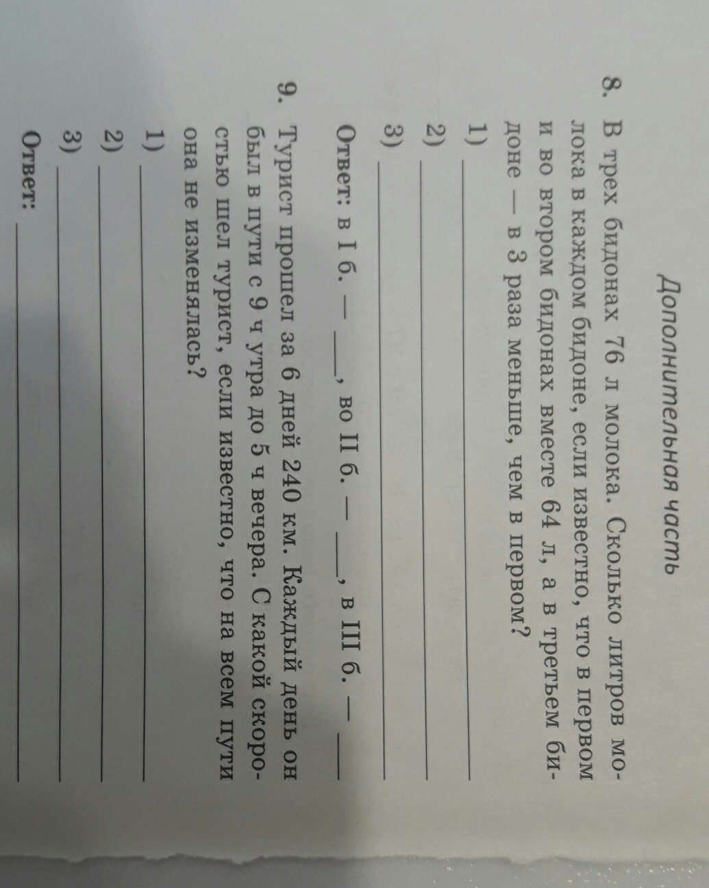 1) 76 - 64 = 12 л в 3-ем бидоне