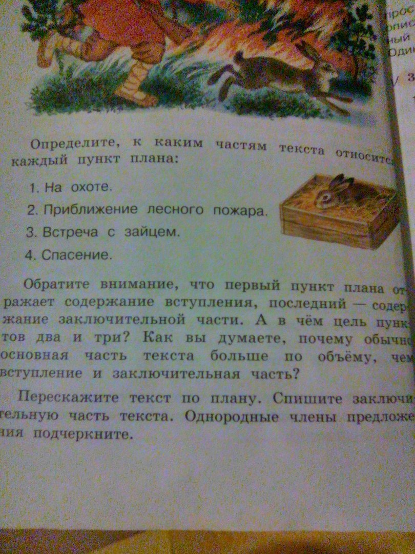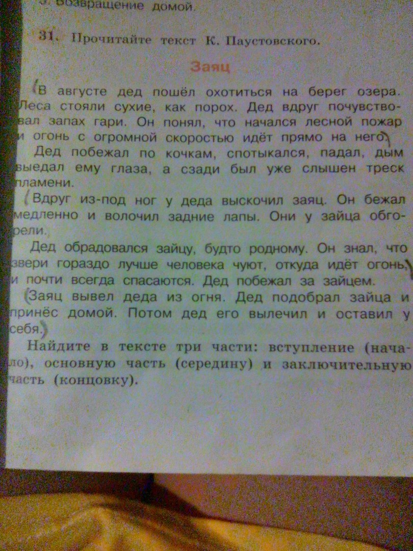 Дед побежал, спотыкался, падал. Он (заяц)бежал и волочил. Звери чуют и спасаются. Дед подобрал и принёс, вылечил и оставил. Подчеркни эти сказуемые.