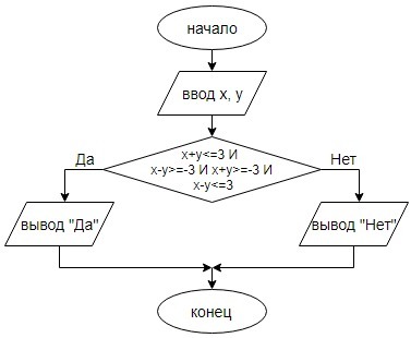 Нужно составить блок-схему для проверки точки, которая должна входить в квадрат(см. рисунок)