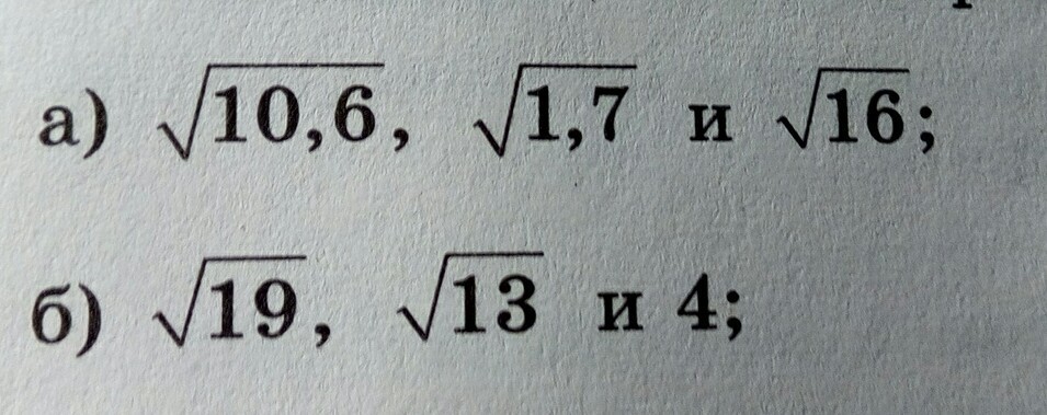 а) √1.7, √10.6, √16