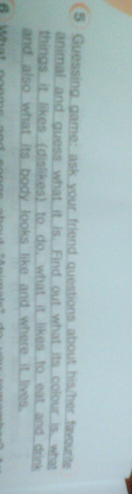 Вгадай гру: запитай своїх друзів про його / її улюблене тварину і здогадайся, що це таке. Дізнайтеся, що це за колір. Дрібні речі, які йому подобається (не любить) робити.Що сподобаються їсти і пити, а також те, що його тіло виглядає і що любить.
