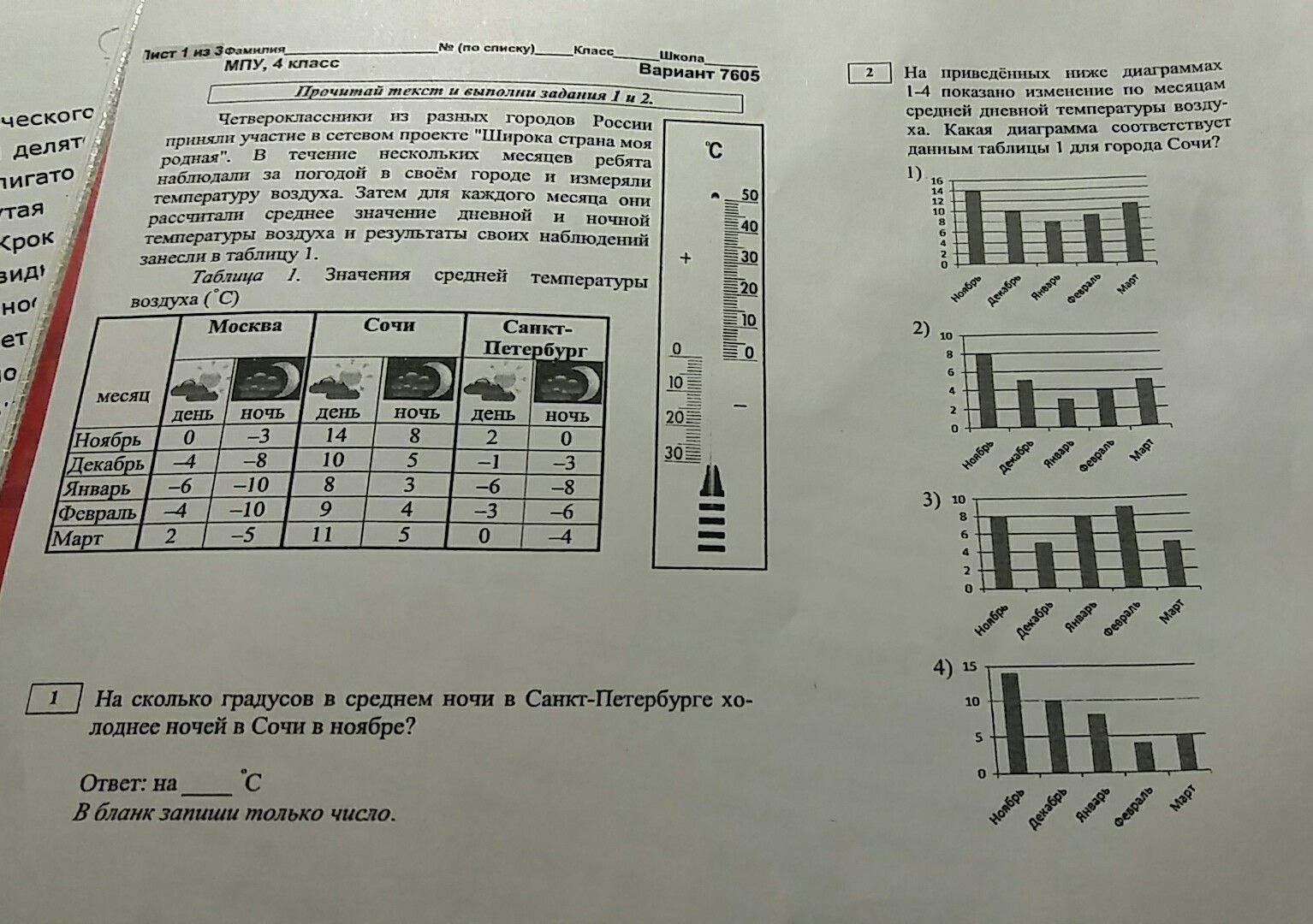 В 1 задание на 8 градусов холоднее во 2 задание 1 диаграмма