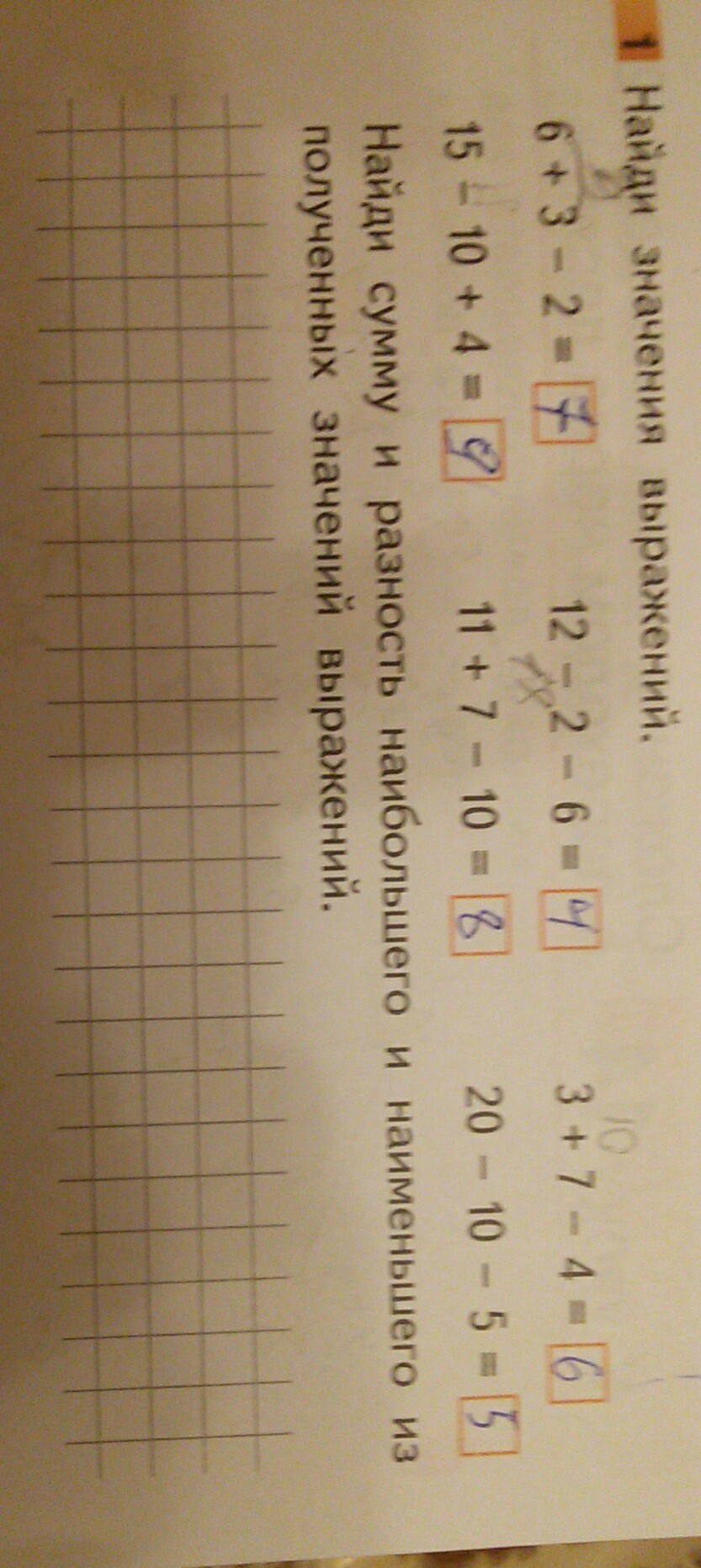 Ты получил значения выражений 7 и 9. Их сумма 7+9=16, разность 9-7=2