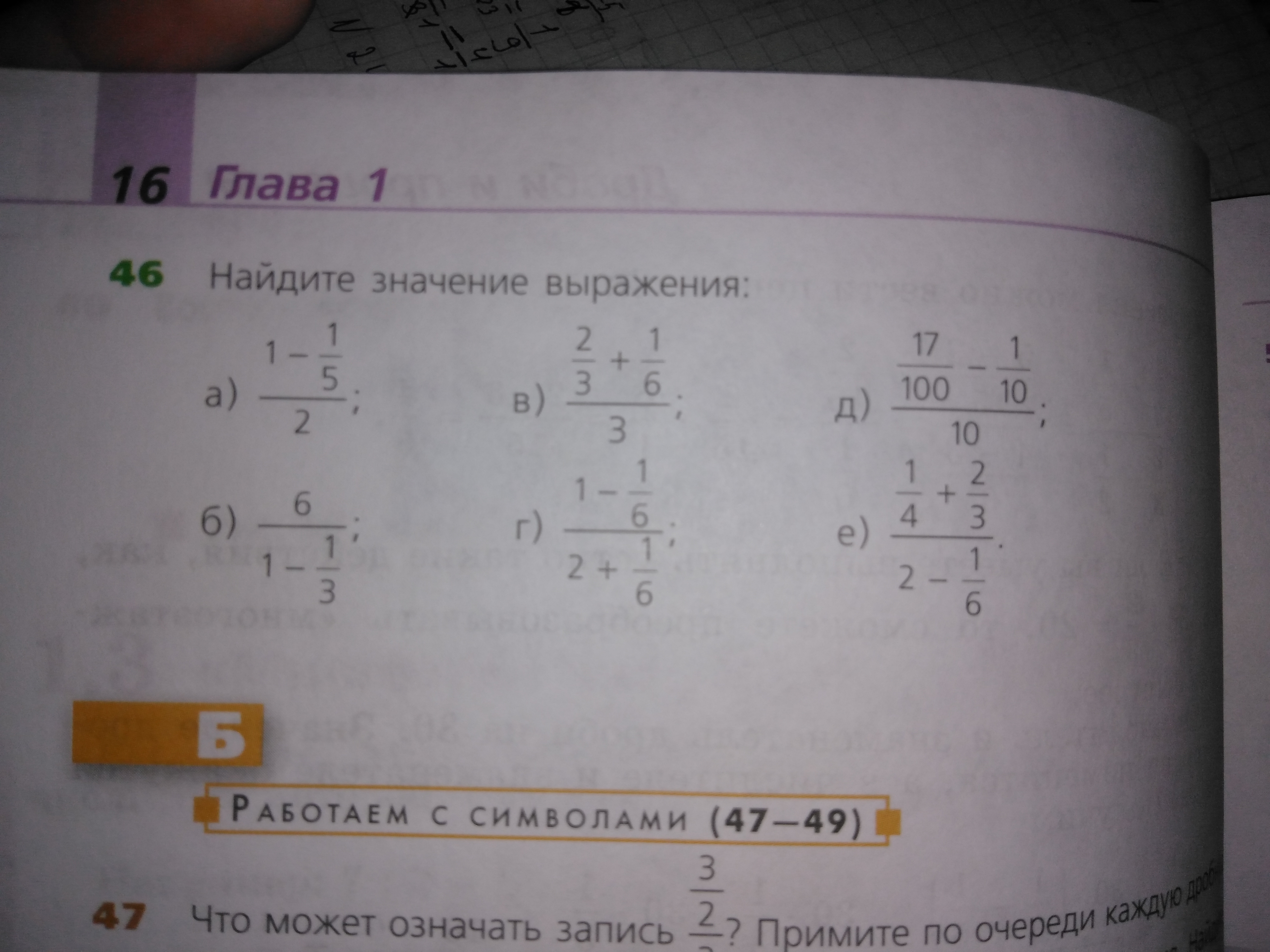 в) 2/3+1/6 / 3=2/3+1/6=4/6+1/6=5/6:3=5/6×1/3=5/18;
