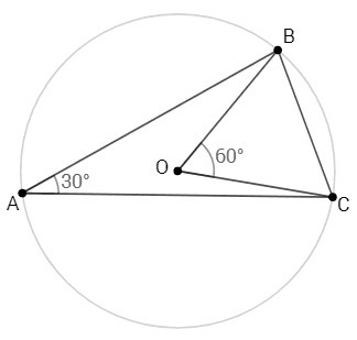 Центральный угол равен удвоенному вписанному углу, опирающемуся на ту же дугу. ∠BOC =2∠BAC=60°.