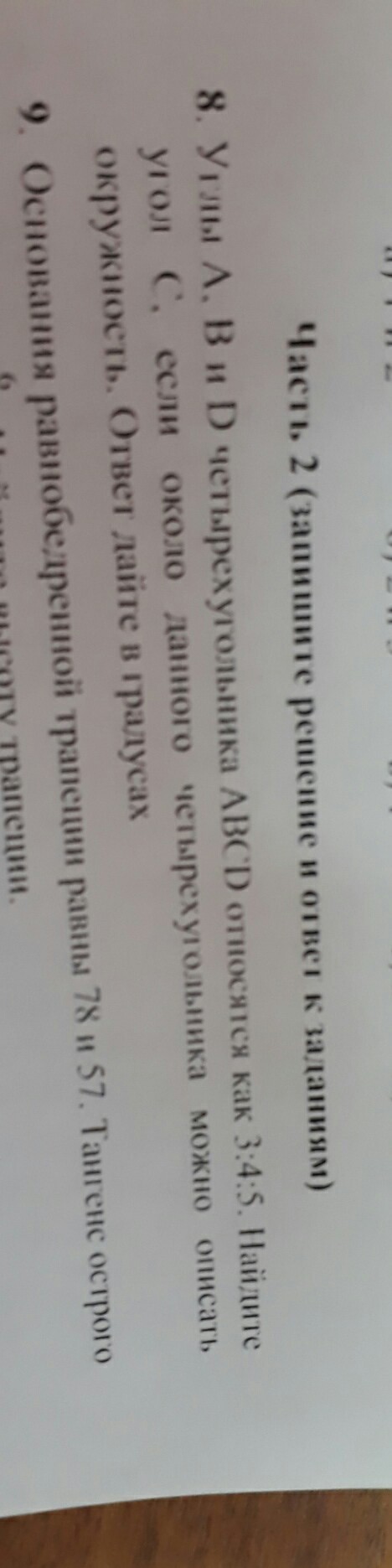 четырех угольник вписанный значит сумма углов В и Д=180(противоположные углы)