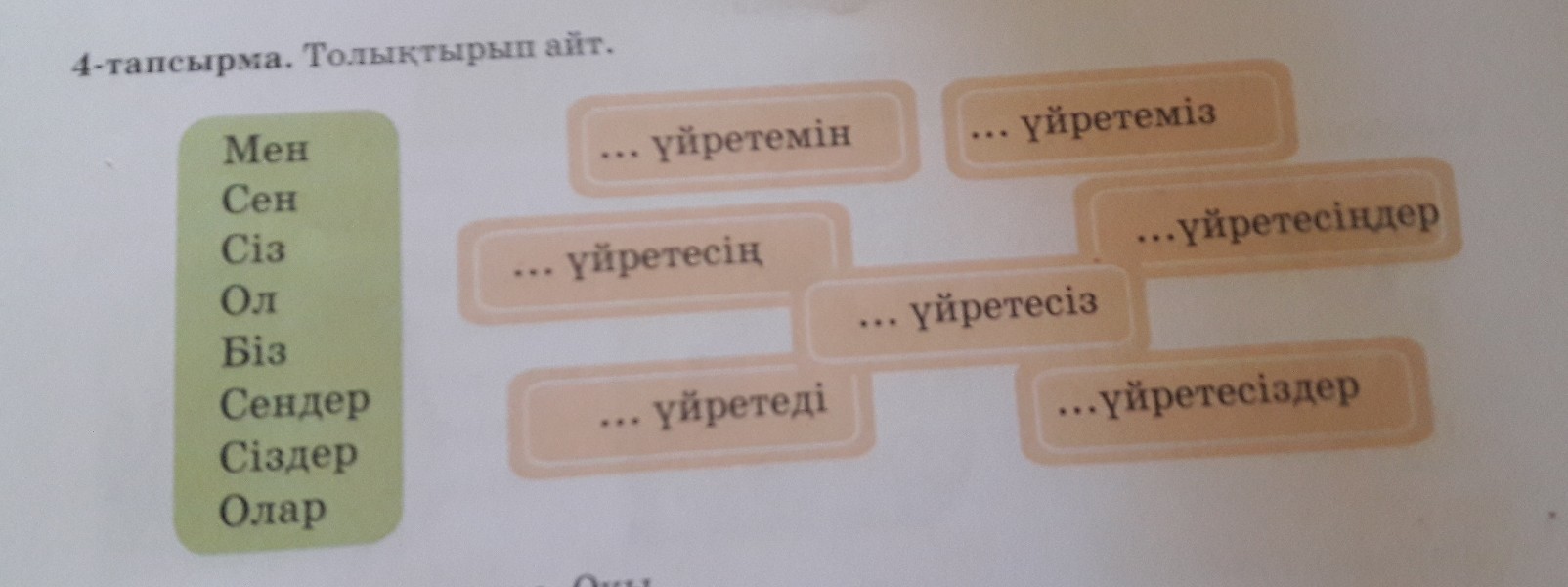 мен үйретемін сен үйретесің сіз үйретесіз ол үйретеді біз үйретеміз сендер үйретесіңдер сіздер үйретесіздер олар үйретеді