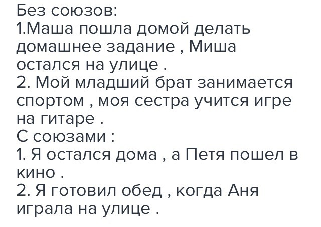 Маша (подлежащее) пошла (сказуемое) домой (обстоятельство) делать(сказуемое) домашнее(определение) задание (дополнение), Миша (подлежащее) остался(сказуемое) на улице(дополнение).