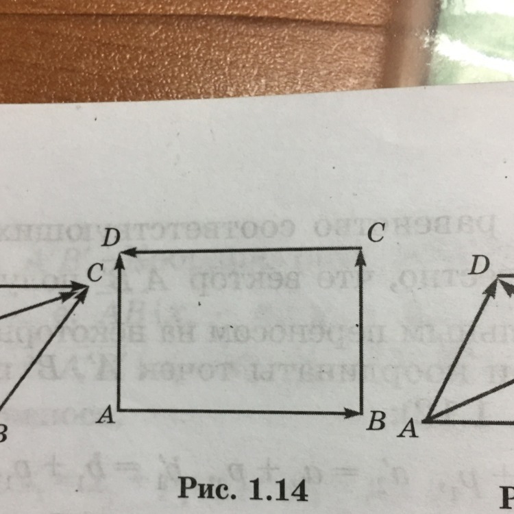 в прямоугольнике ABCD (рис1.14) какие векторы: а)равны; б) противоположно направлены;в)имеют равные длины?