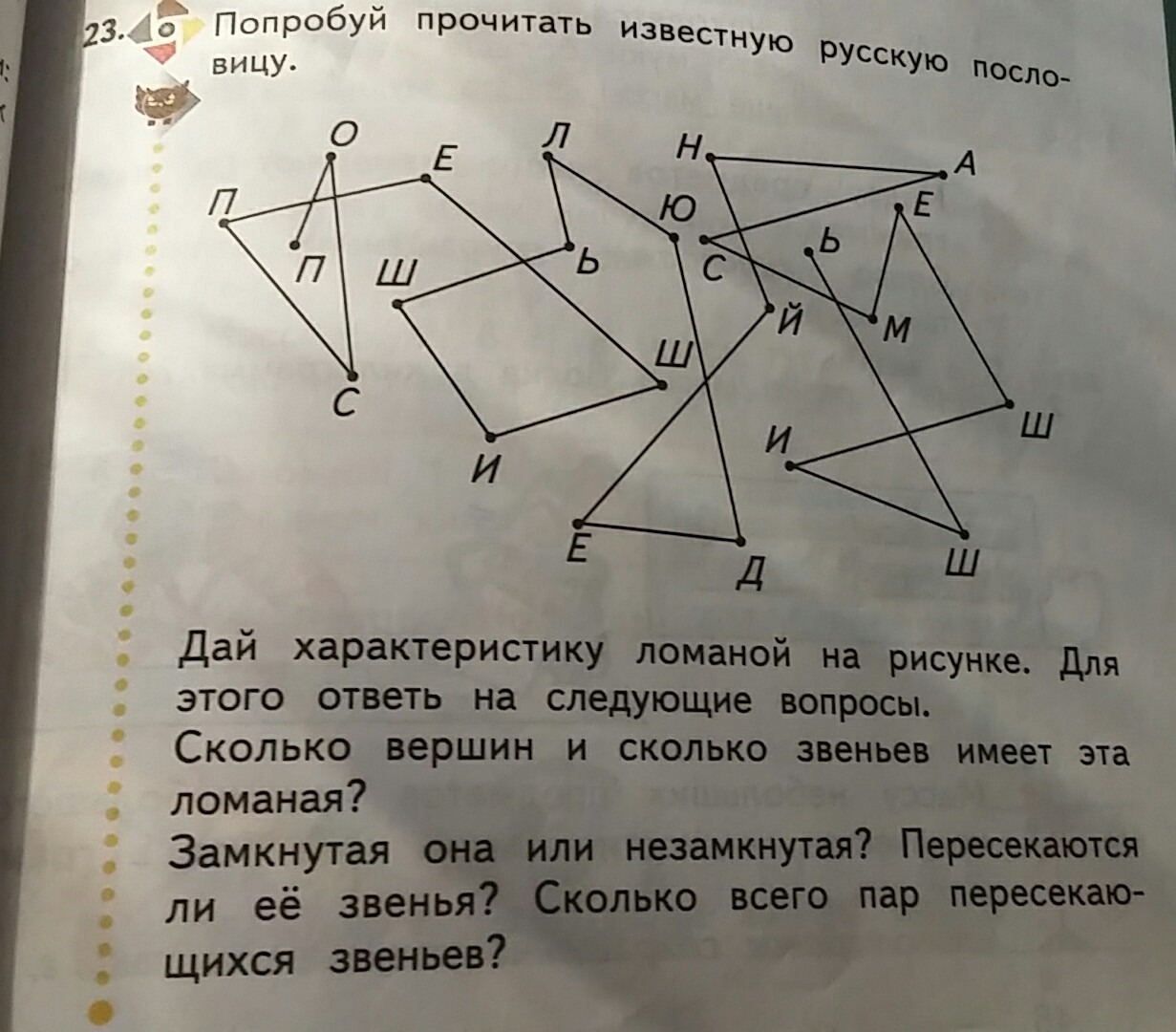 попробуй прочитать известную русскую пословицу Я знаю поспешишь людей насмешишь а вот другие ответы там где дай характеристику ломаной на рисунке Я не знаю даю вам 20 баллов