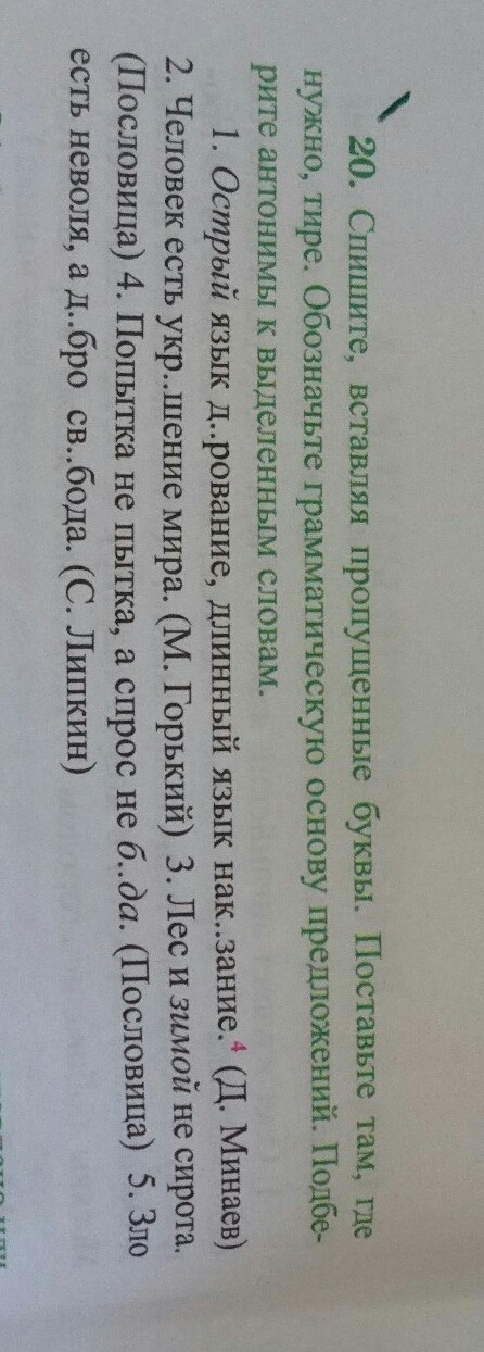 1. Острый язык-дарование, длинный язык- наказание.2. Человек есть украшение мира.3. Лес и зимой не сирота. 4. Попытка не пытка, а спрос не беда. 5. Зло есть неволя, а добро свобода.