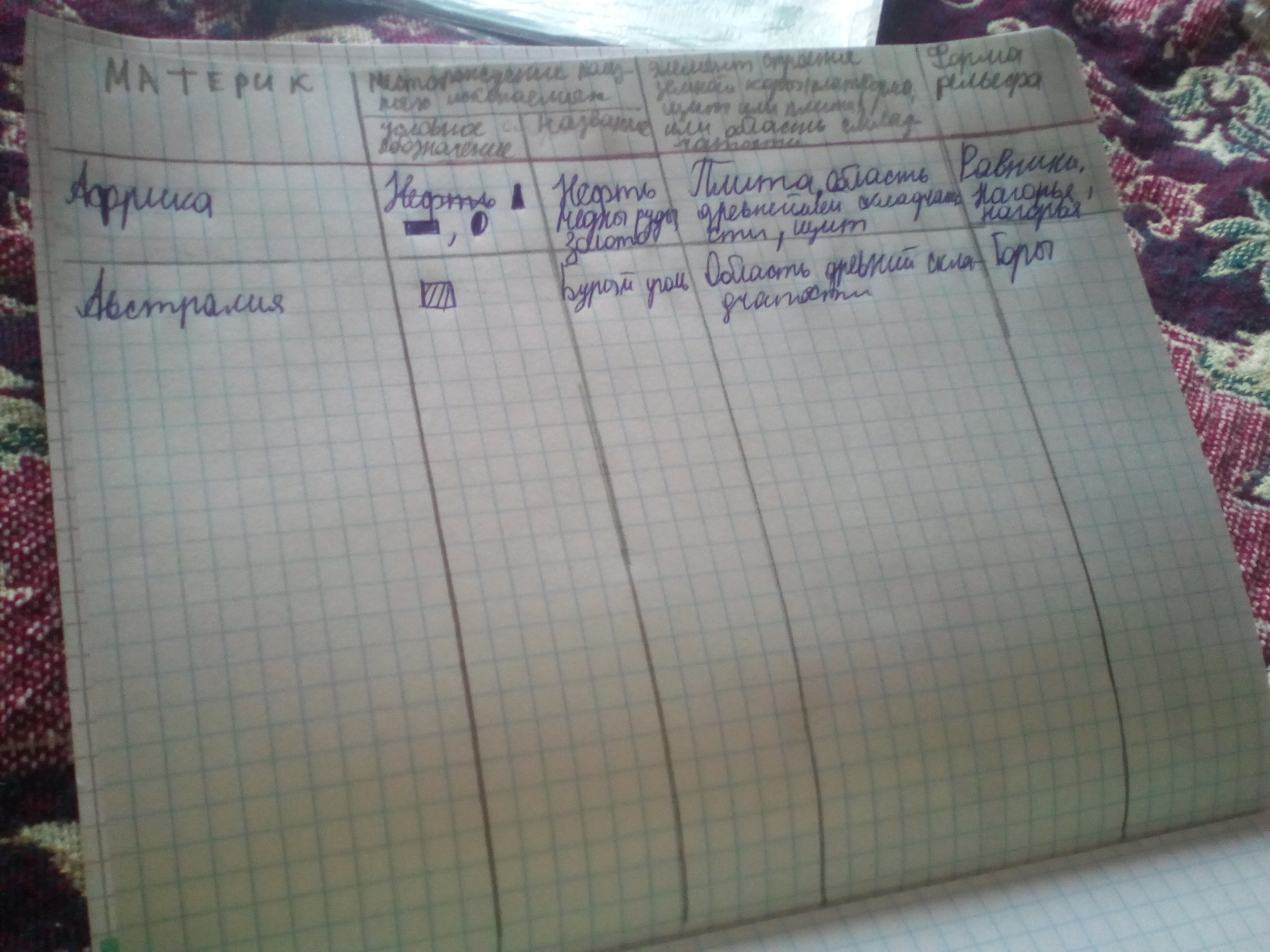 Надо закончить таблицу по атласу