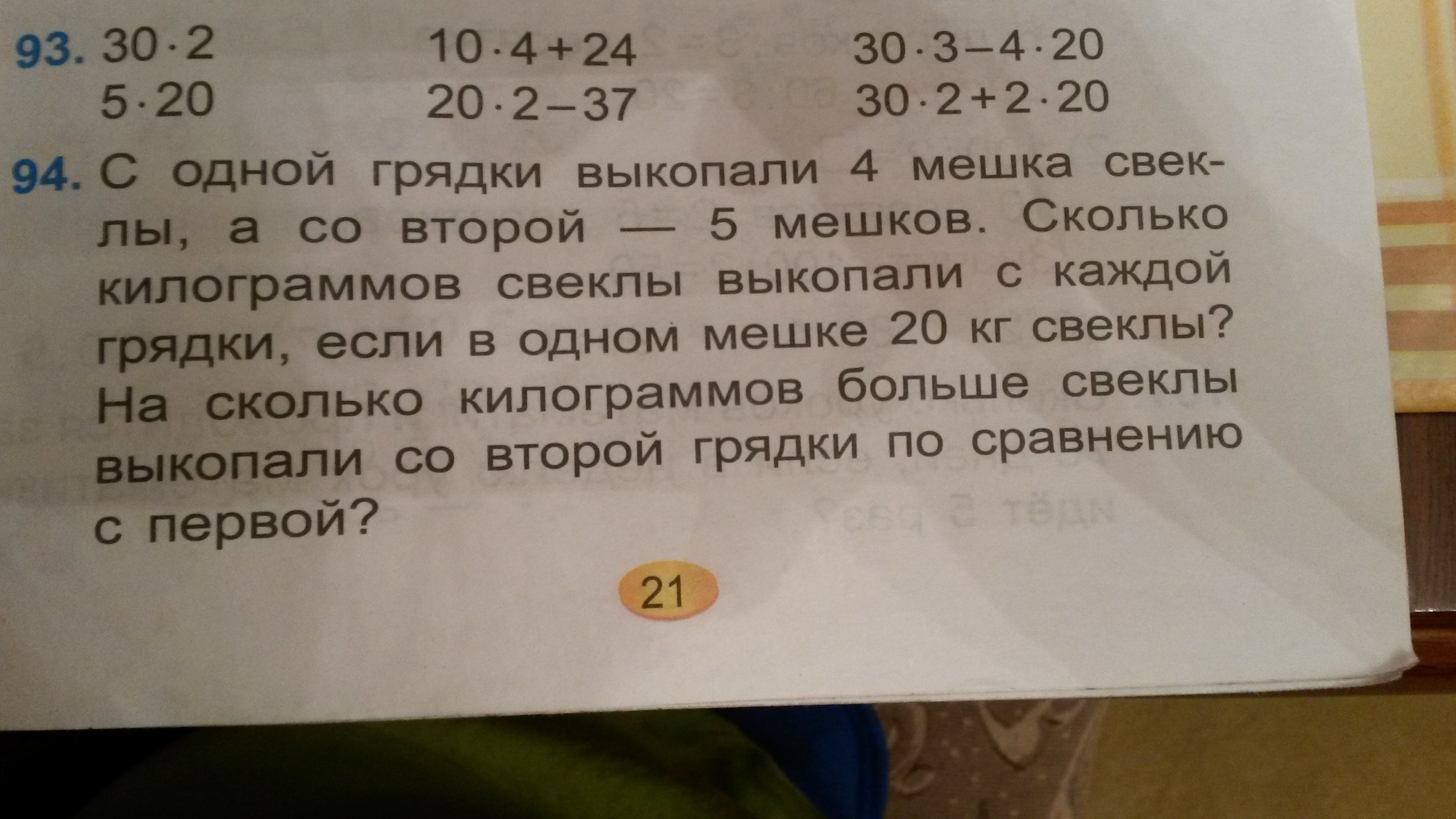 2)5•20=100(кг)-свёклы выкопали с 2 грядки