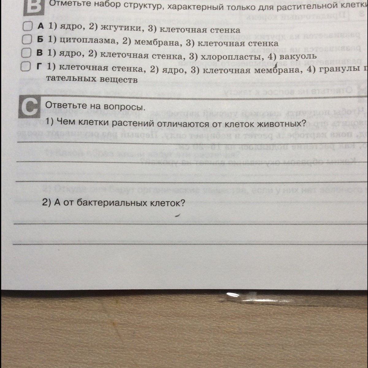 Правильный ответ В, ведь в раститительных клетках имеются хлоропласты.