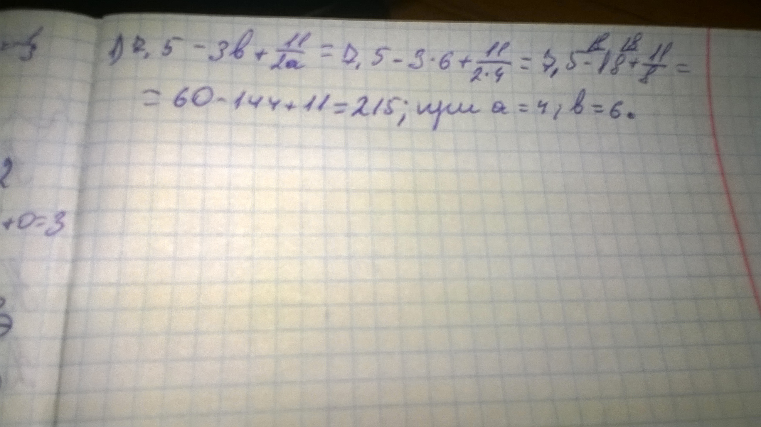 1) 7,5-3b+1 1/2a; при том, что a=4, b=6