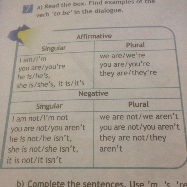 Там конечно в задании написано найти примеры формы "to be" в диалоге, но ты диалог не выставила