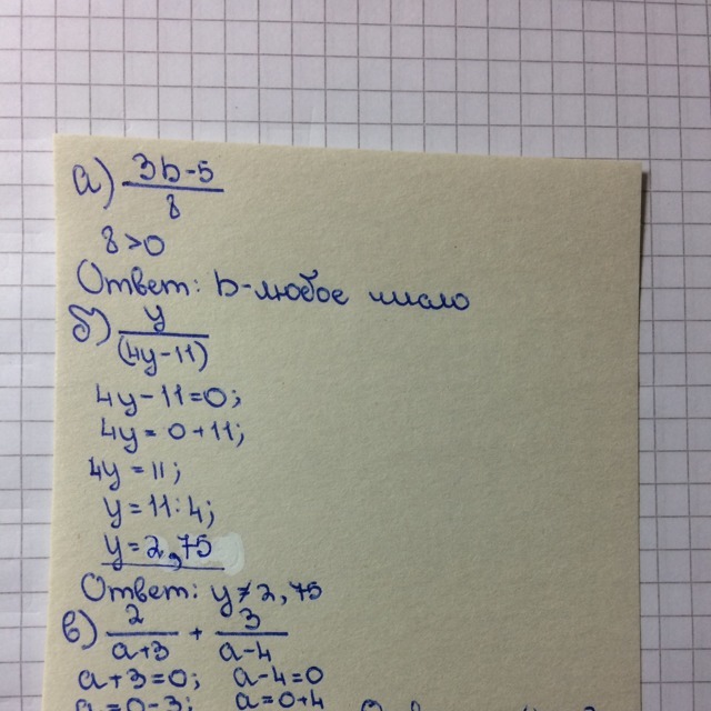 b) y/(4y-11) в) 2/(а-3)+3/(а-4)