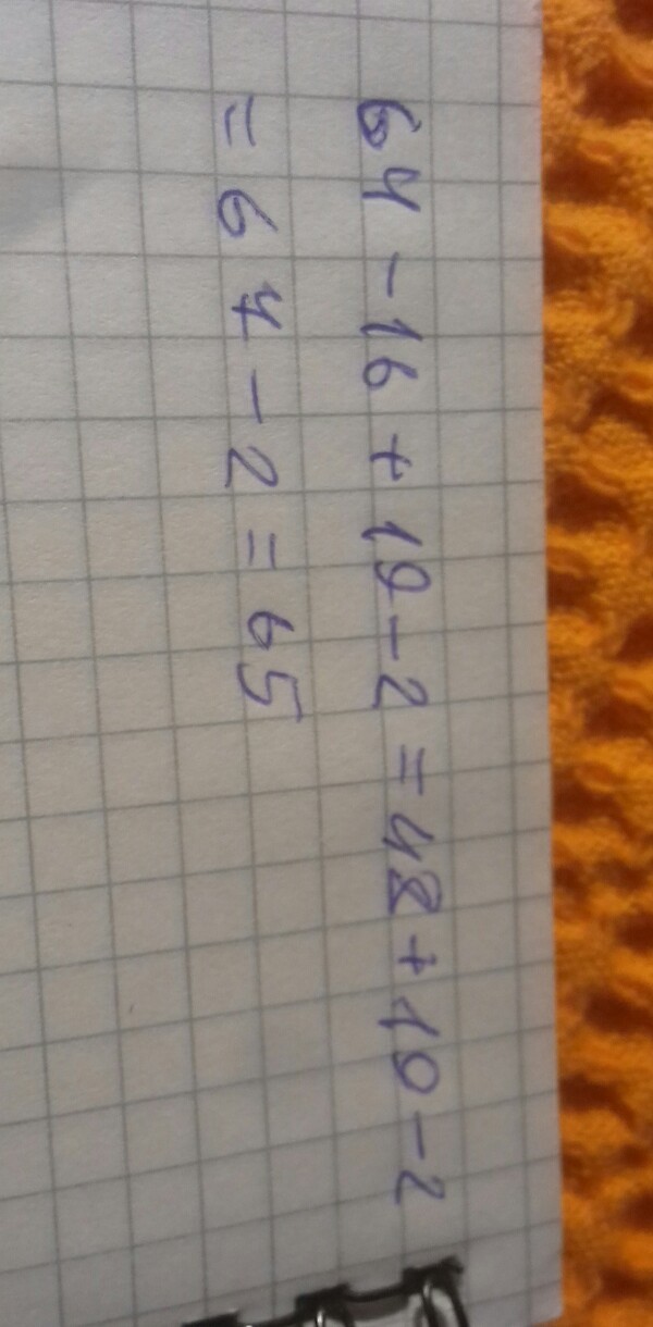 СРОЧНОООО ОТДАМ ВСЕ БАЛЛЫ выполните действие цепочкой по образцу - 75-5+17-20=70+17-20=87-20=67 МНе нужно решить всего один пример - з) 64-16+19-2