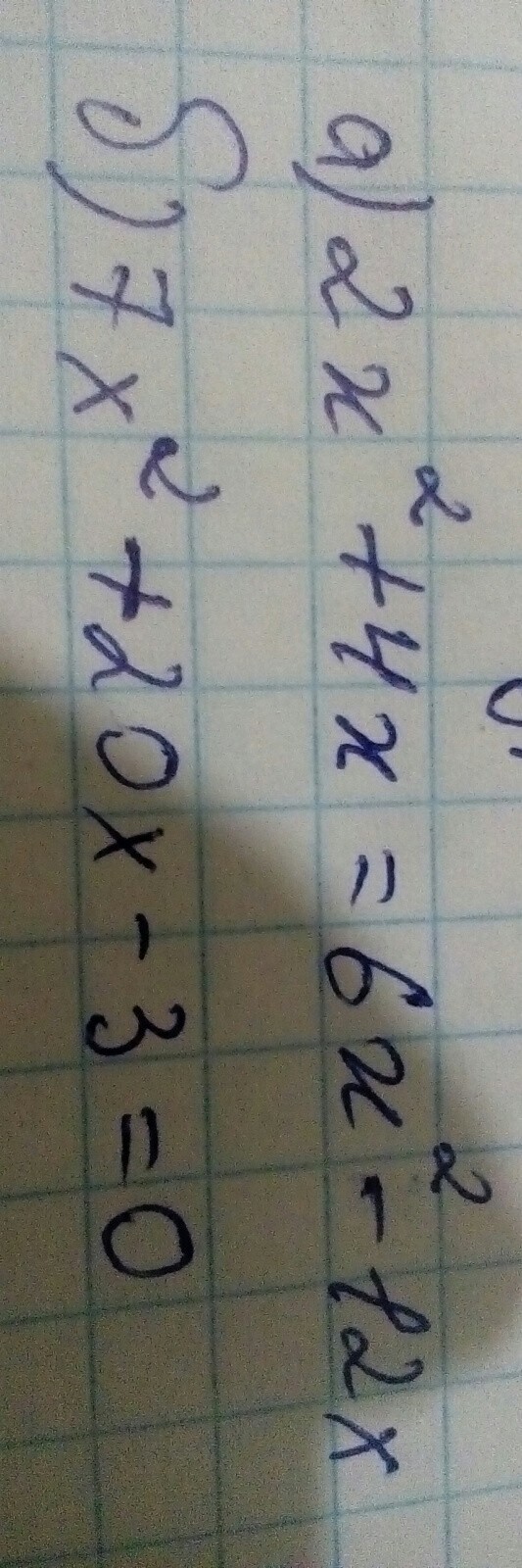 Как решить уравнения а)2х^2+4х=6х^2-12х.