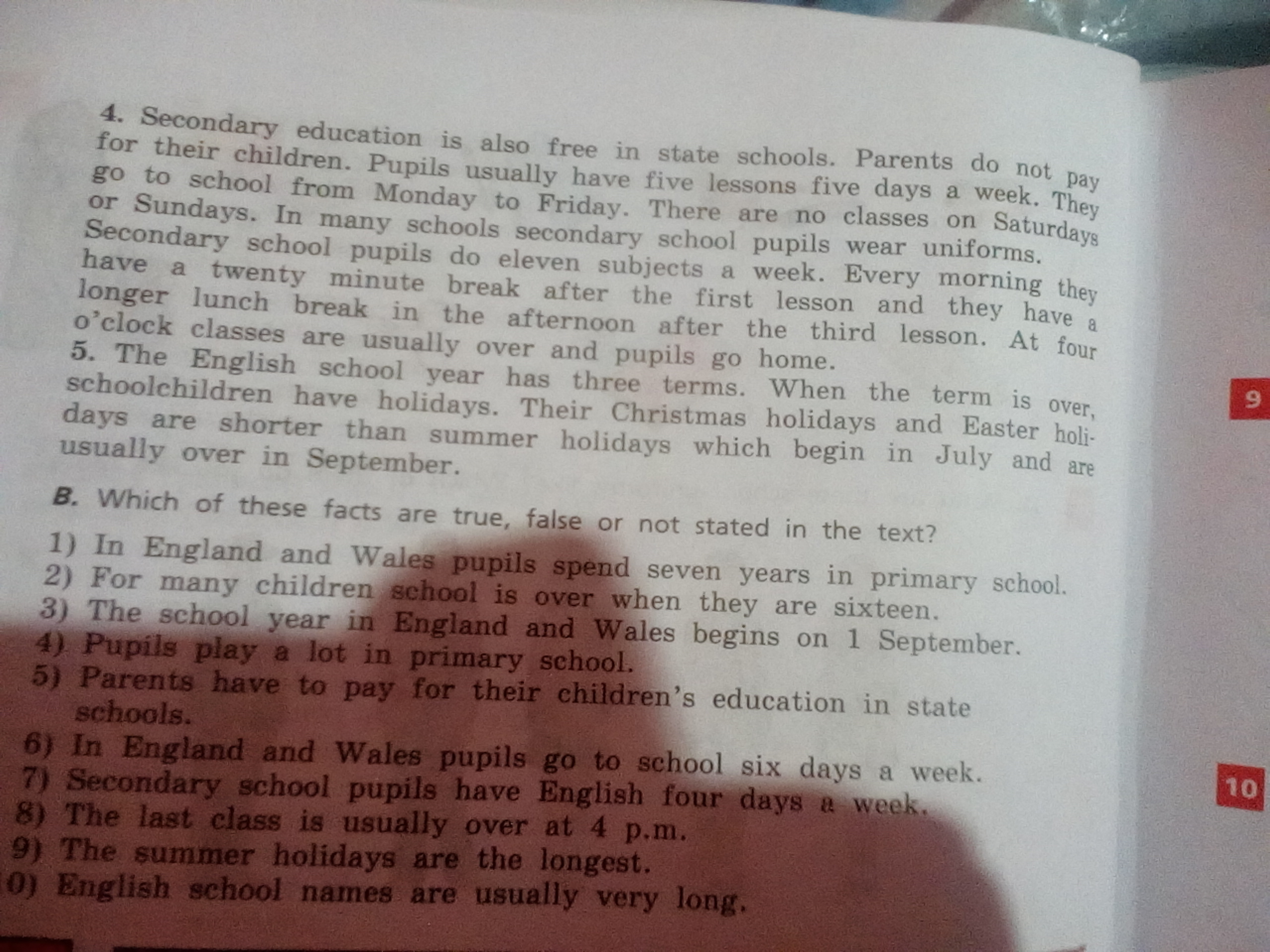 Помогите пж,даю 30 баллов и оставлю комментарий на вашей стене) Прочитайте текст и выполните задание B пожалуйста)) Если Вы выбрали False,то напишите правильный вариант)