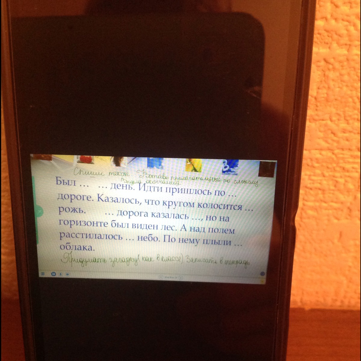 Был теплый июльский день. Идти пришлось по дороге. Казалось, что кругом колосится рожь. Длинная дорога казалась широкой, но на горизонте был виден лес. А над полем расстилалось голубое небо. По нему плыли пушистые облака.