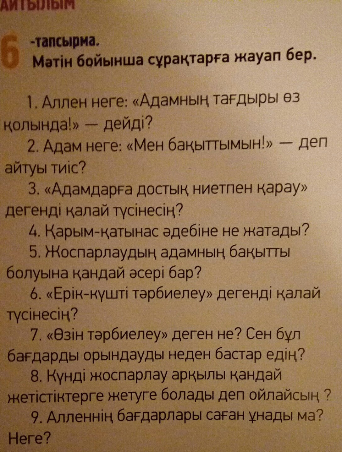 7.Адам өз өзін жаксылыкка уйретип оз озин жаксы соз айтуга жаксы заттар истеуге уйретуи кажет( озн блесн)