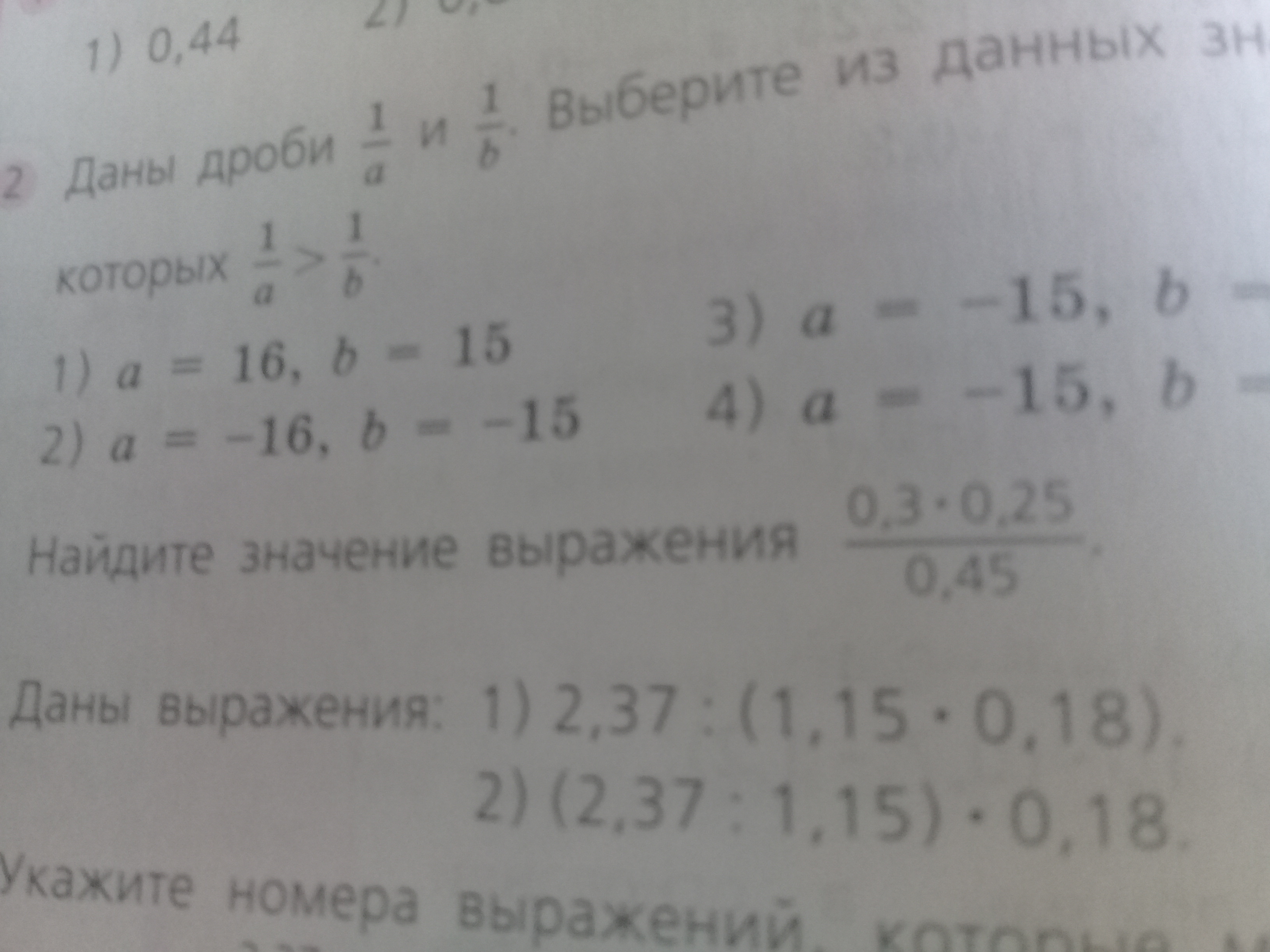 frac{0,3*0,25}{0,45} = frac{0,3*0,5*0,5}{3*0,3*0,5} =frac{0,5}{3} =frac{5}{30} =frac{1}{6}