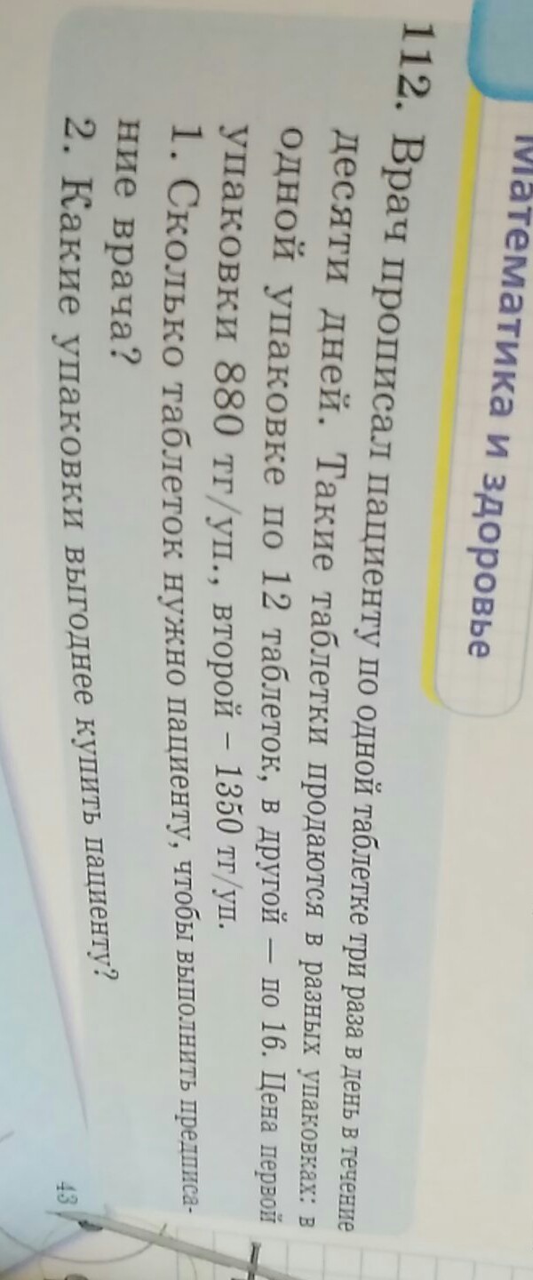 Упаковок по 12 табл. Потребует 3 шт. И потратит он: 3*880=2640 тнг