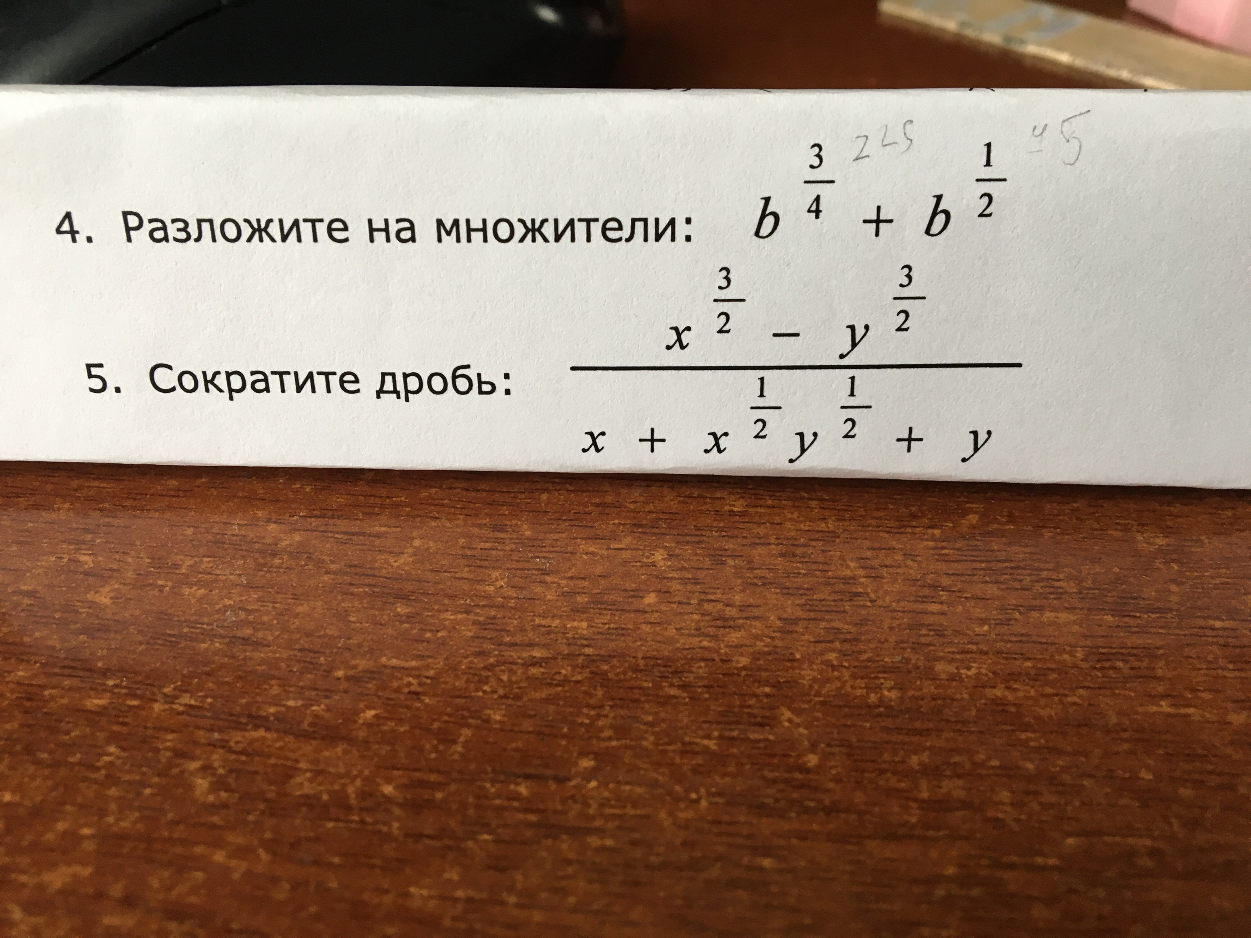 5. (x^3/2 - y^3/2) / (x + x^1/2 * y^1/2 + y ) = (x^1/2 - y^1/2)(x + x^1/2*y^1/2 + y) / (x + x^1/2*y^1/2 + y) = x^1/2 - y^1/2