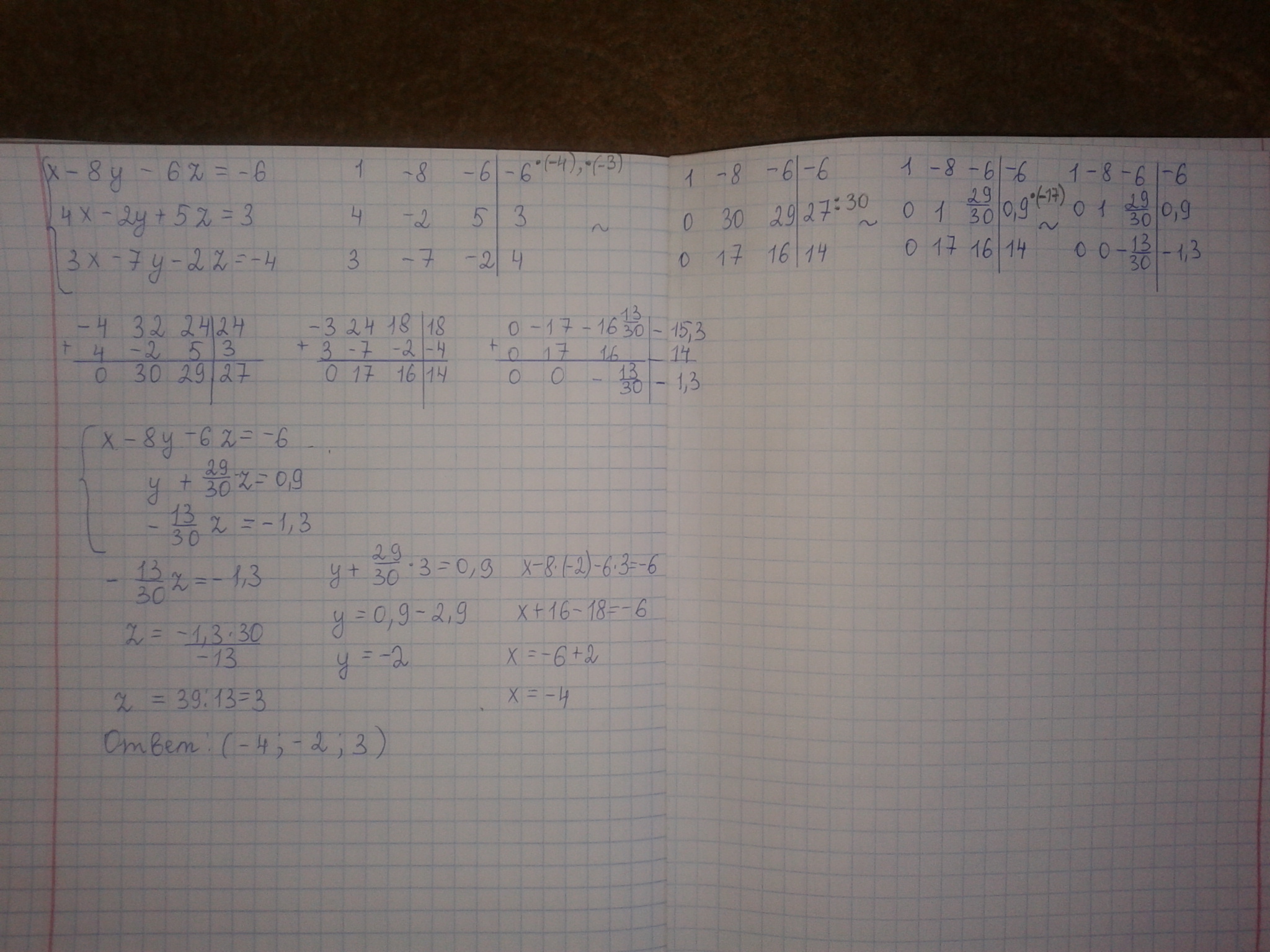 Далее - ур. 1) умножаем на -3 и складываем с ур. 3) и получаем -0х.