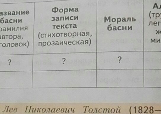 1)название басни(фамилия автора,заголовок) 2)форма записи текста в басне(стихотворная,прозаическая) 3) Мораль басни 4)Аллегория (трудолюбие,легкомыслие,жадность,милосердие) (Басня Стрекоза и муравей Лев Толстой) Помогите пожалуйста.