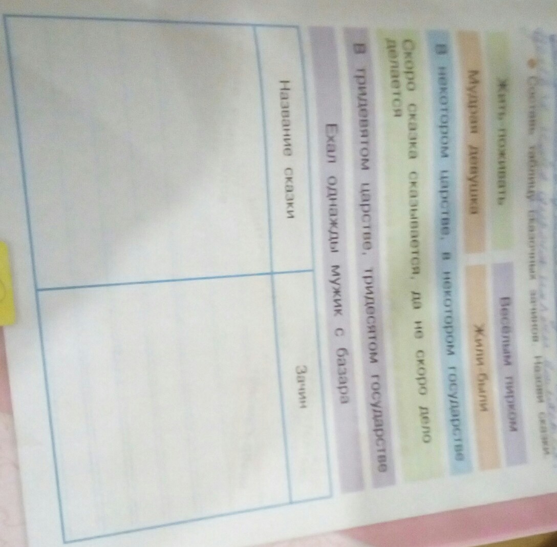 Составь таблицу сказочных зачинов.Назови сказки