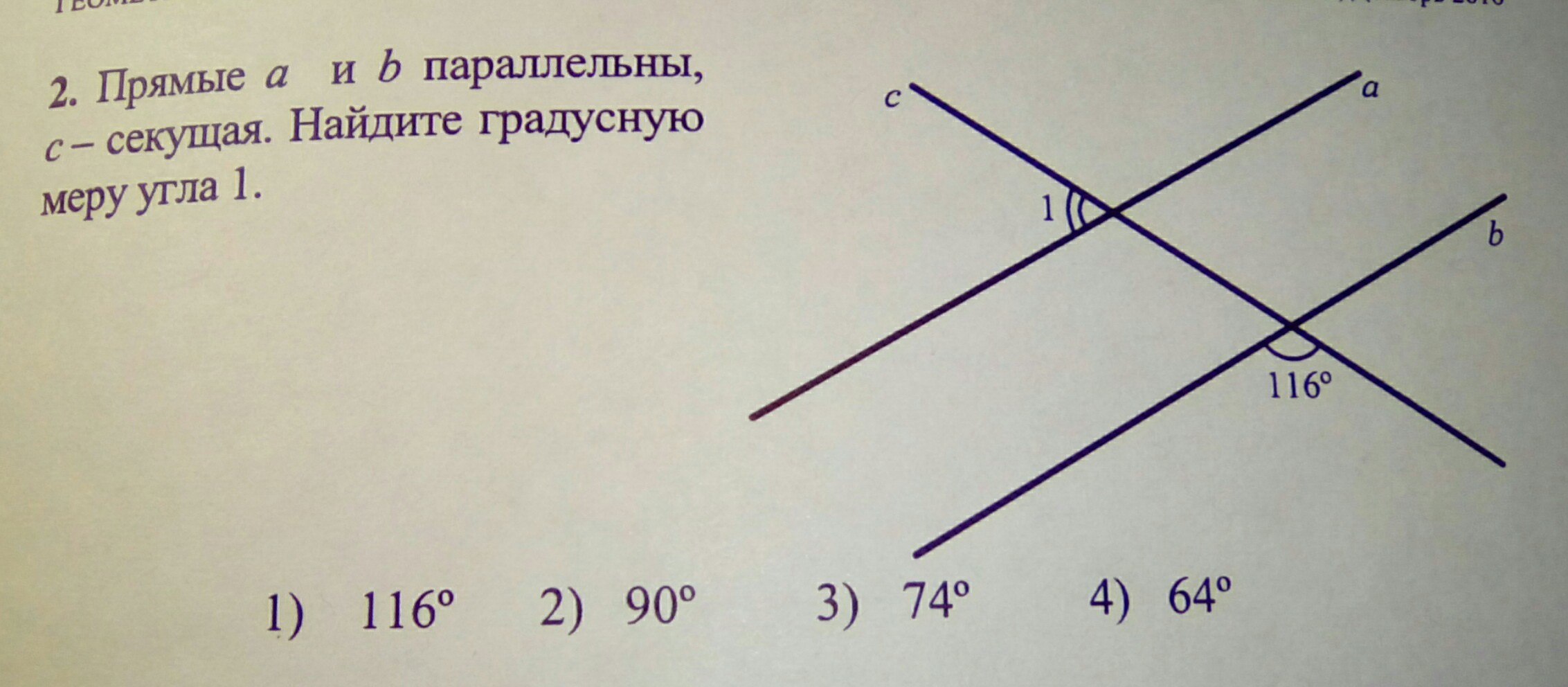 угол 116° и смежный углу 1 - соответственные, а значит равны