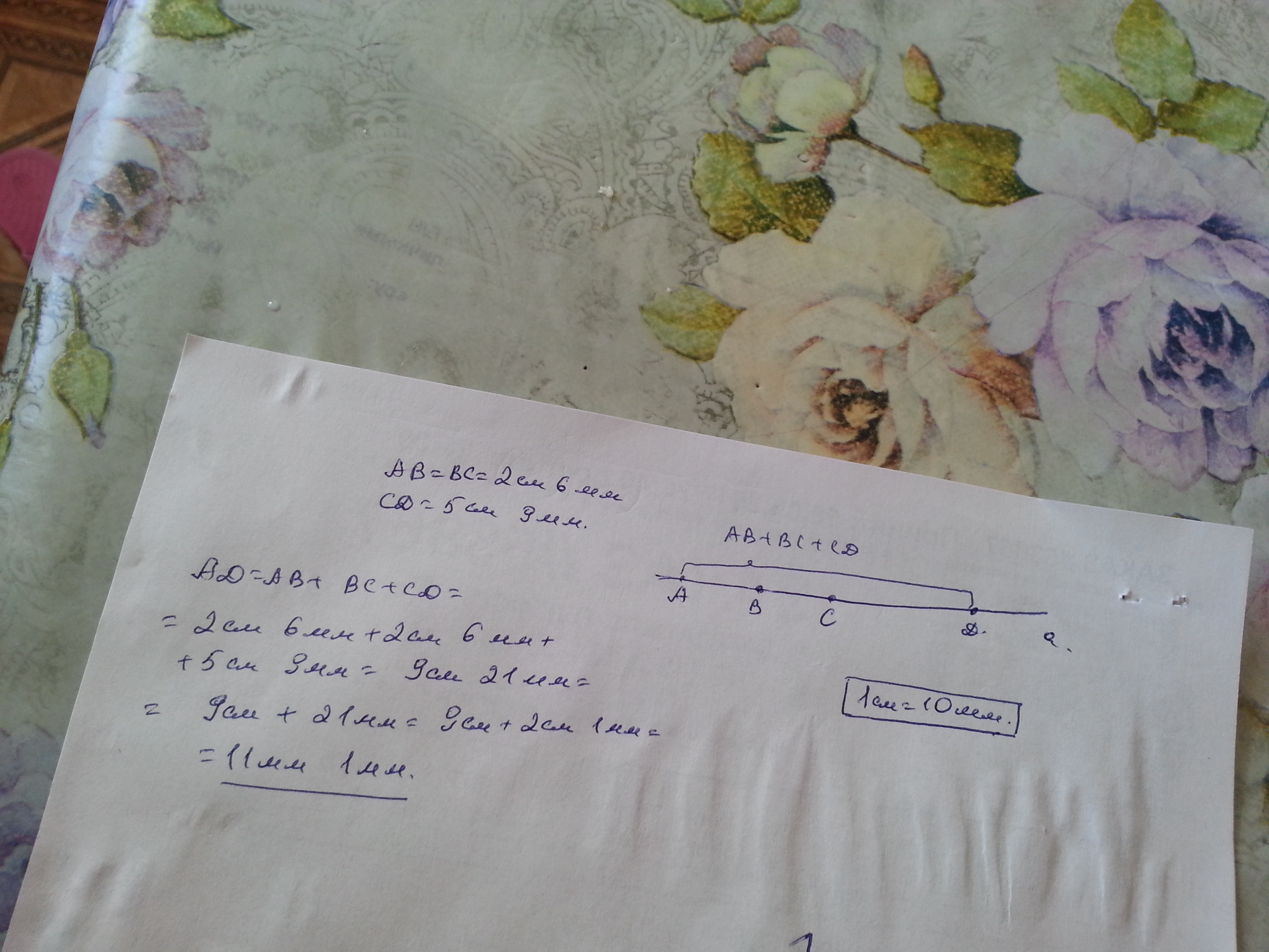 на прямой а постройте два разных отрезка АВ=ВС= 2 см 6 мм и отрезок СD= 5 см9_ мм чЕму равна длина отрезка АD? сколько решений имеет задача? Помогите пожалуйста!!!!