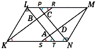 ∠LRK=∠RKN (накрест лежащие углы при LM||KN)
